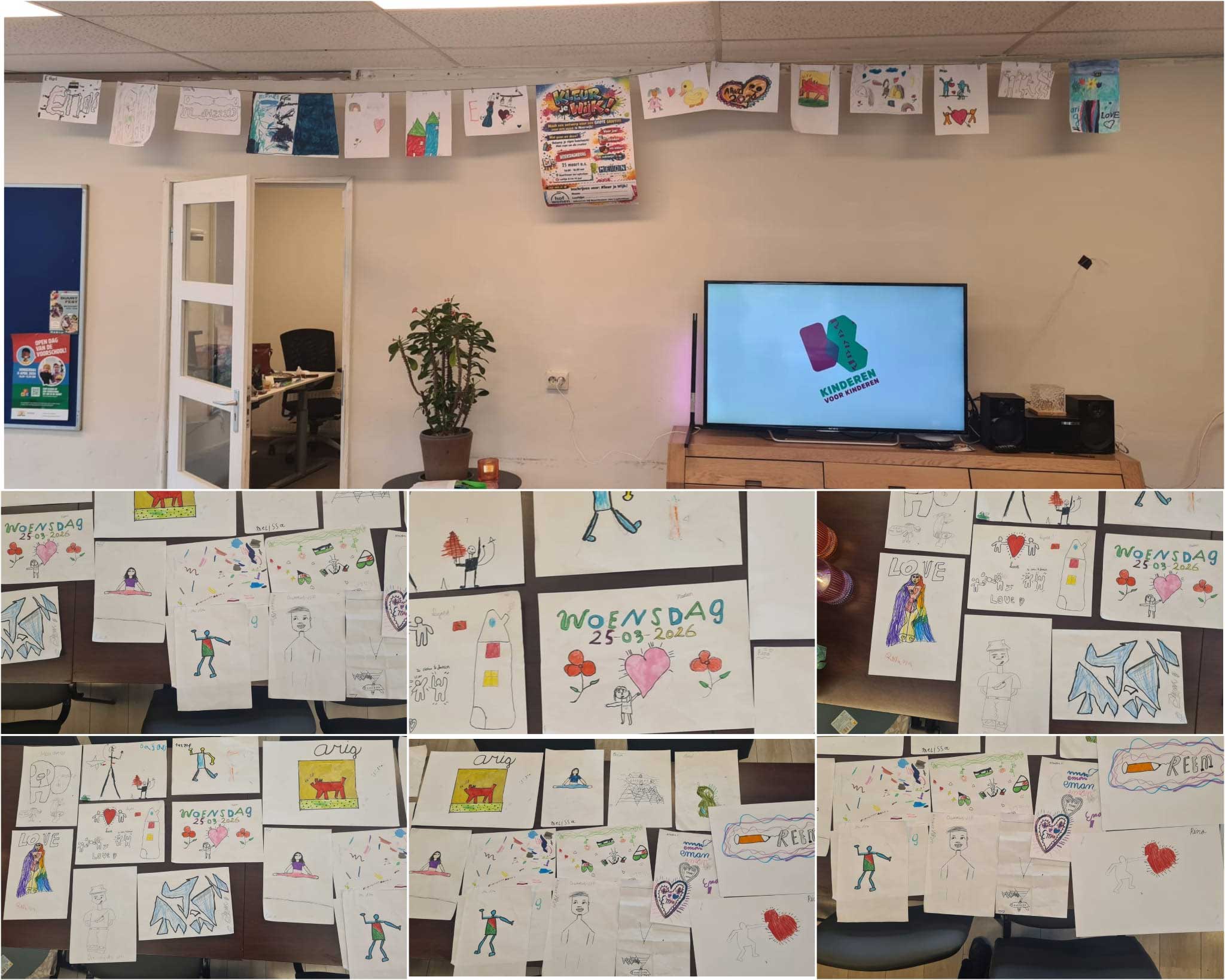 Kleine kunstenaars in Buurtkamer De Luyk voor wijkkunst
